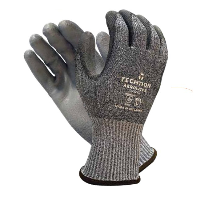 10gg Cut-5 Glass HPPE glove with Polyurethane palm coating.